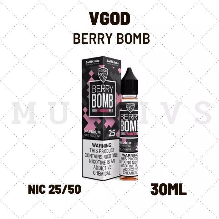 น้ำยา VGOD Berry bomb 30 ml น้ำยาซอลนิค brand VGOD เป็นน้ำยาบุหรี่ไฟฟ้าเมกา (usa) ยอดนิยม เป็นยี่ห้อที่เป็นตัวเลือกแรก ที่นักสูบเลือกเป็นอันดับต้นๆ