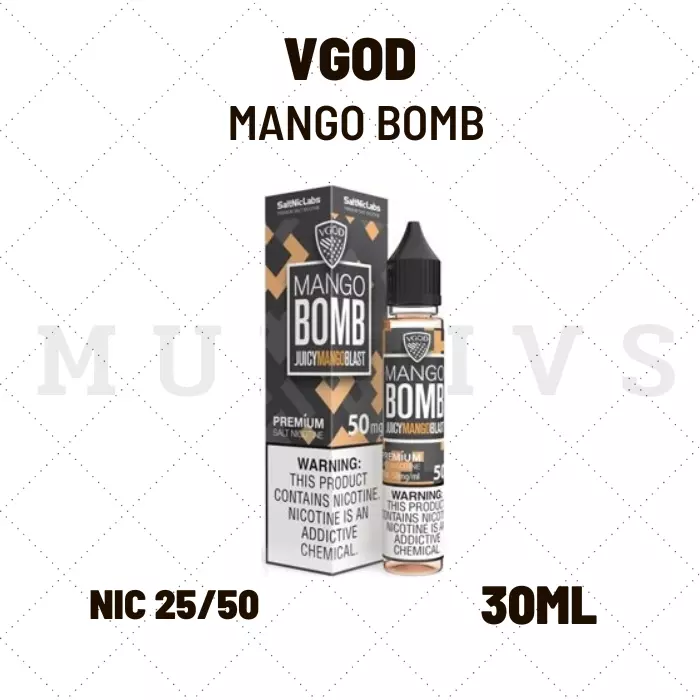 น้ำยา VGOD Mango bomb 30 ml น้ำยาซอลนิค brand VGOD เป็นน้ำยาบุหรี่ไฟฟ้าเมกา (usa) ยอดนิยม เป็นยี่ห้อที่เป็นตัวเลือกแรก ที่นักสูบเลือกเป็นอันดับต้นๆ